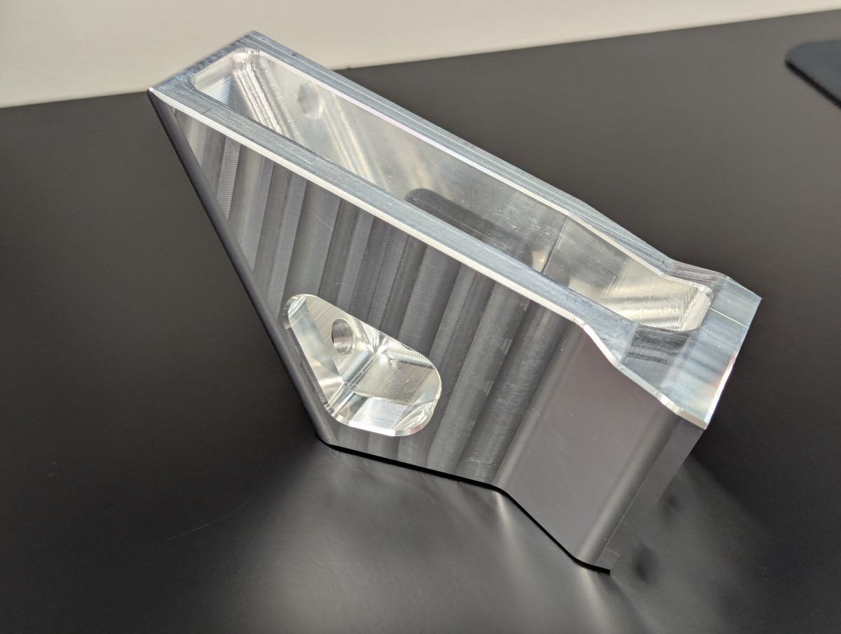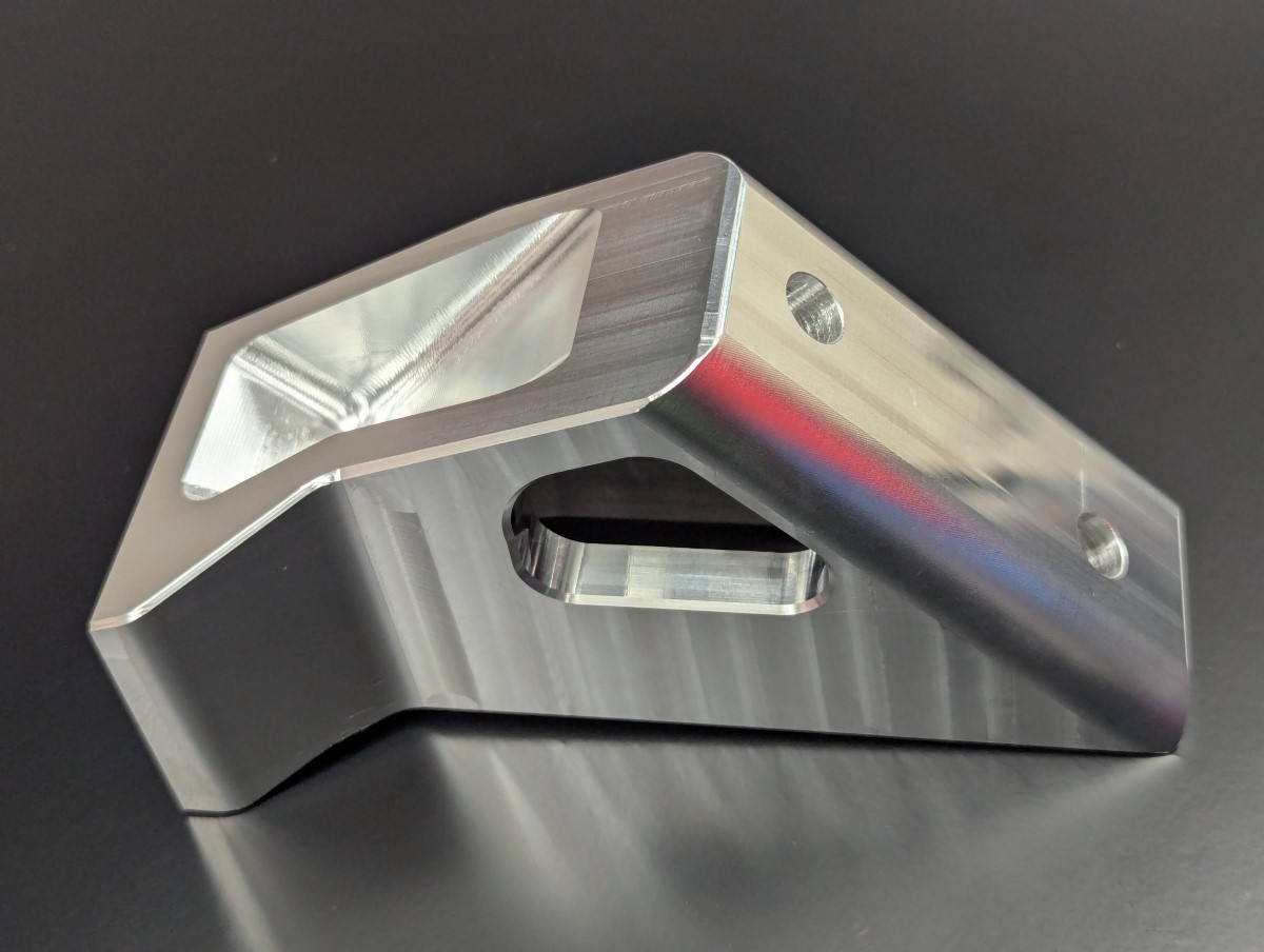 This is a custom designed billet aluminum front engine mount bracket. It's made from 6082 aluminum and has a slightly cut down design which only uses 2 of the 3 stock mounting points in the block.