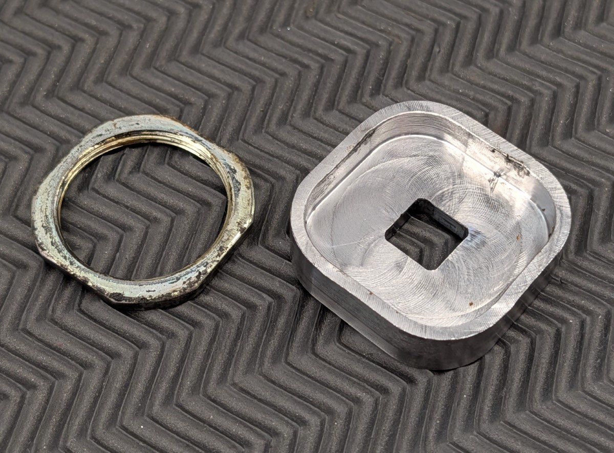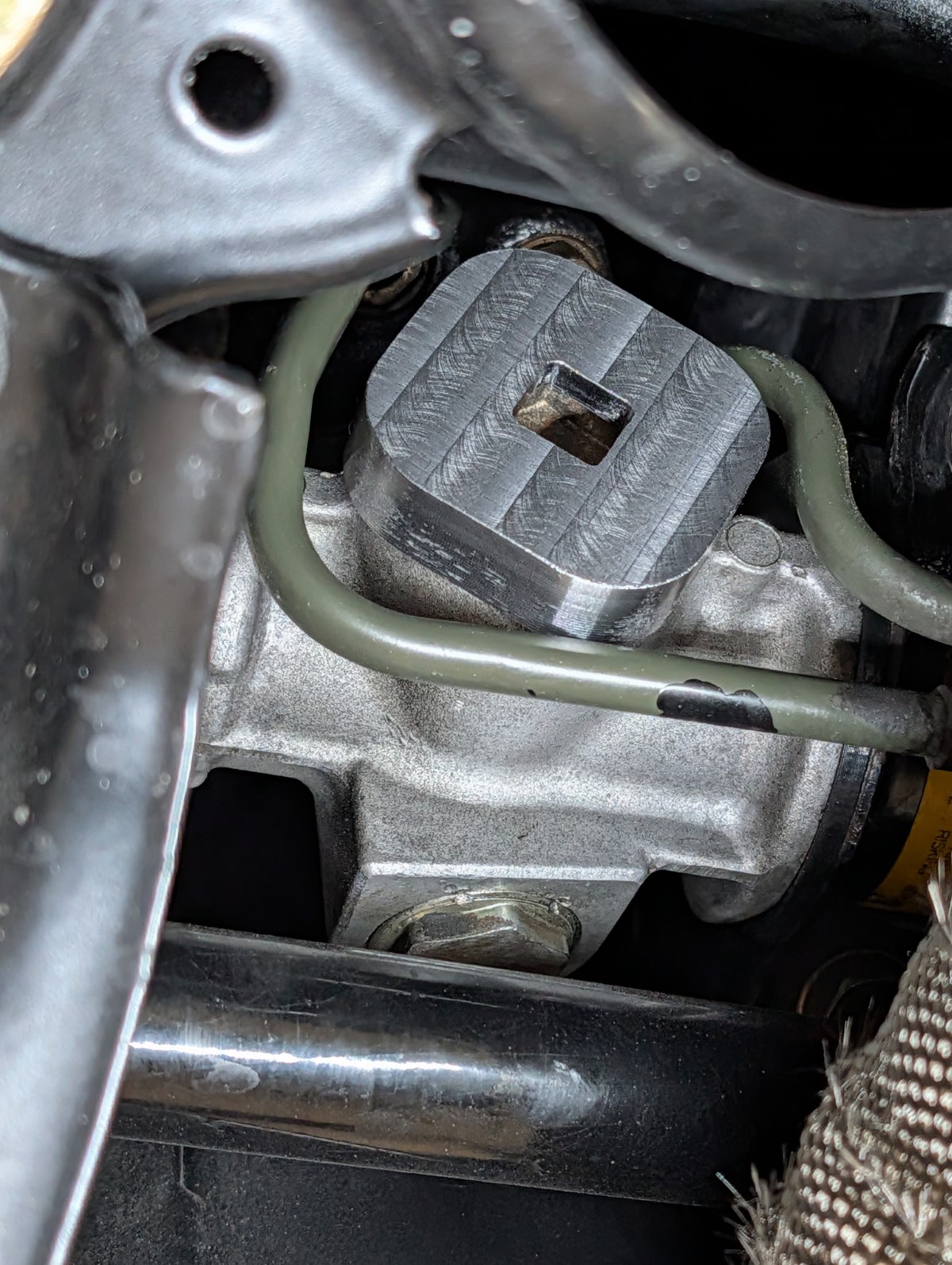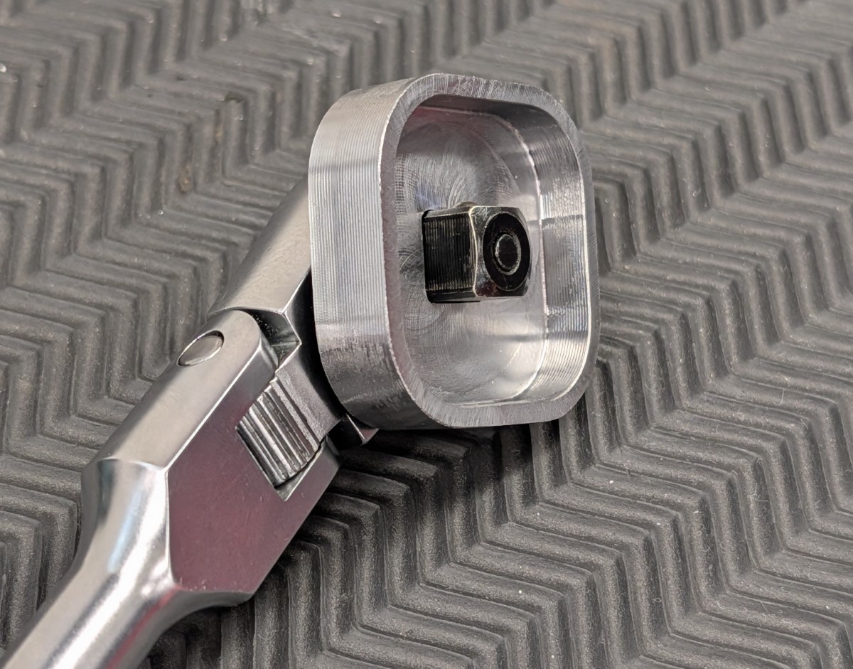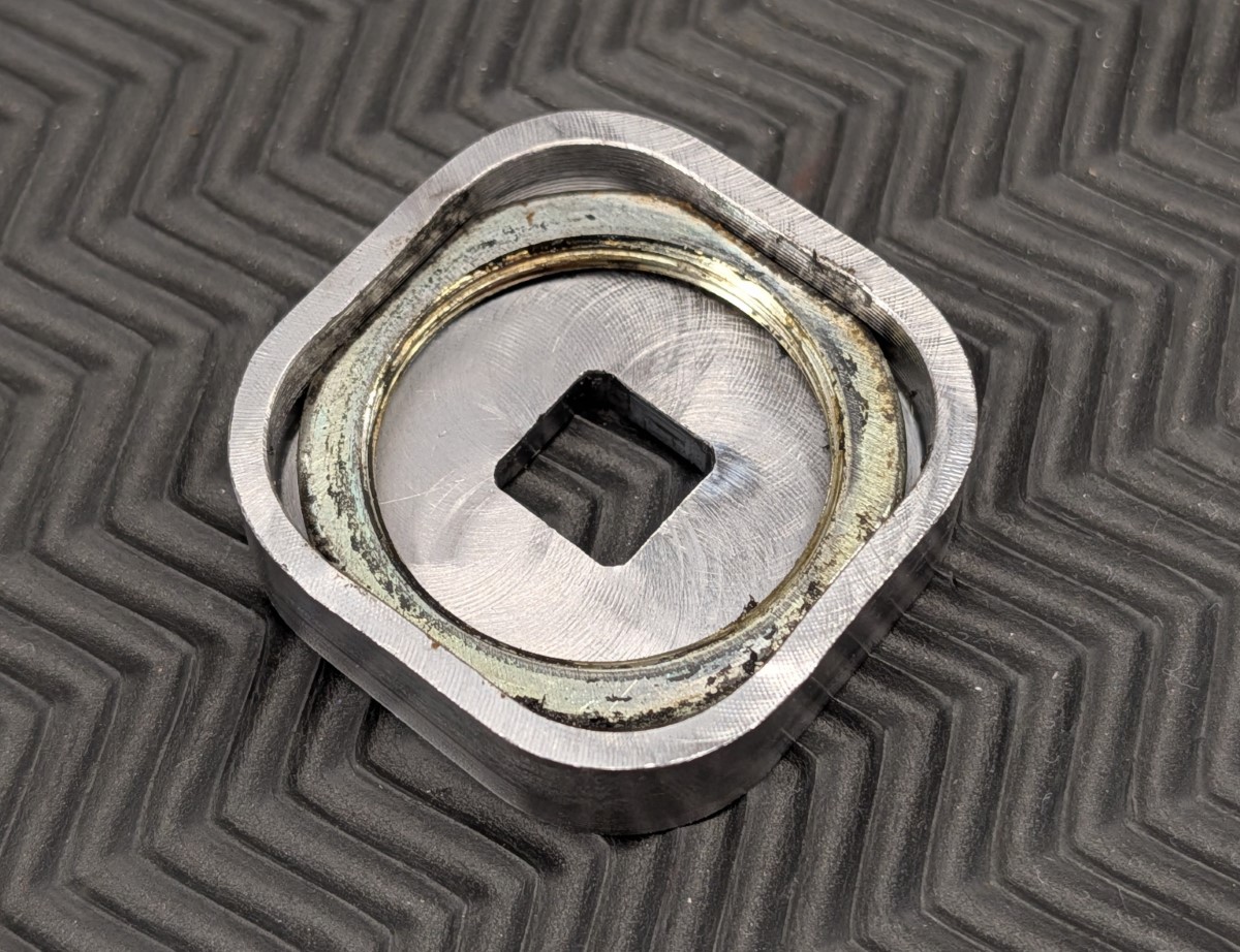 In order to remove the piston an oddly shaped square locking nut first needs to be removed. There is very little space available around the locking nut so we have designed a special steel socket to make this job easier.