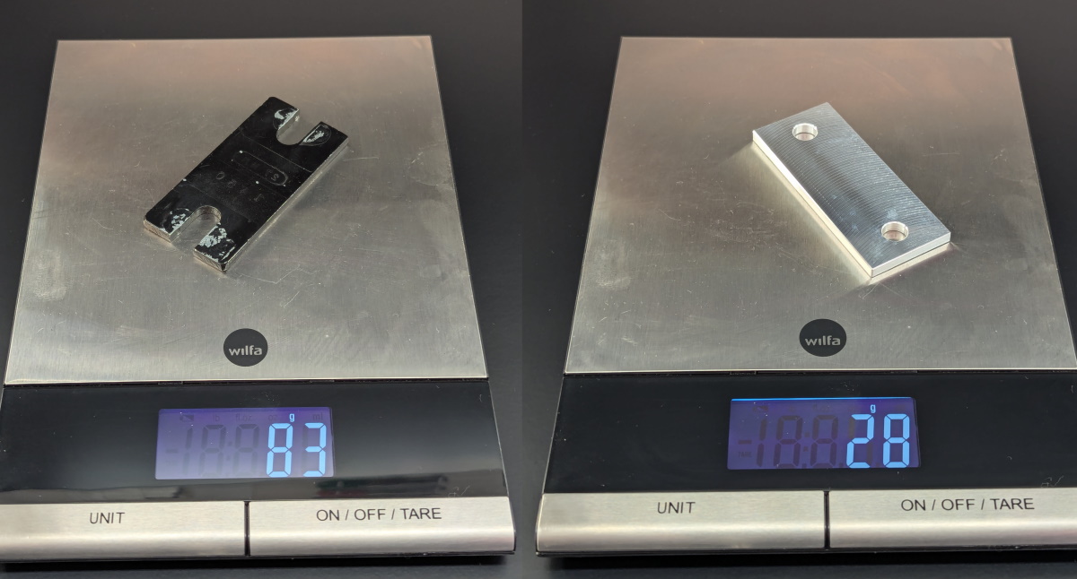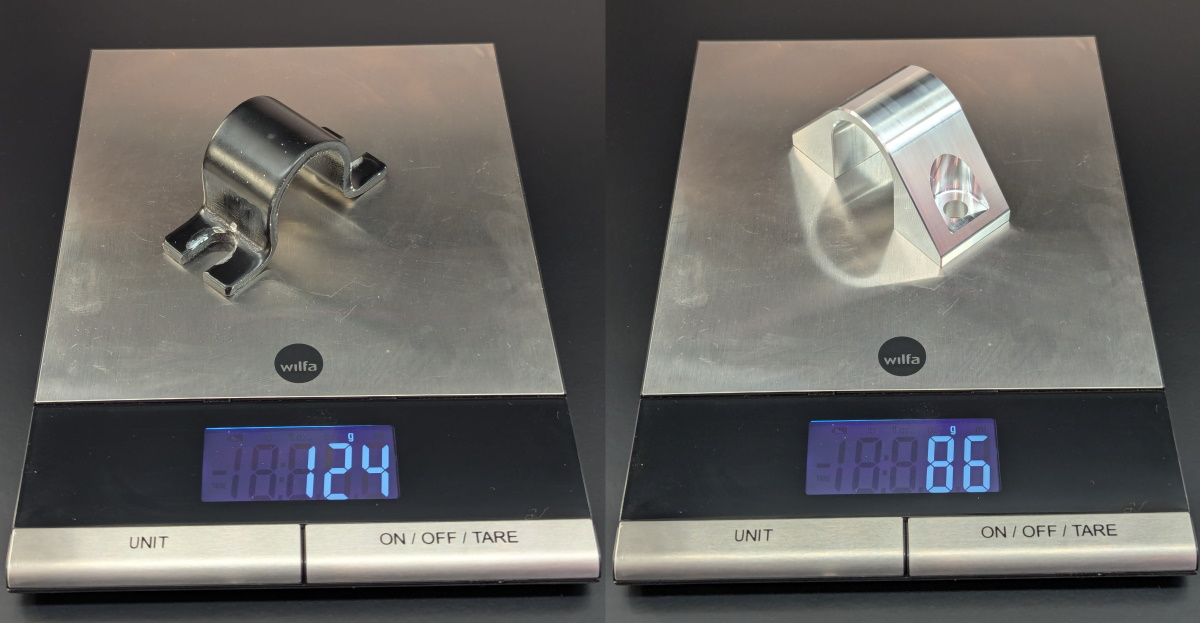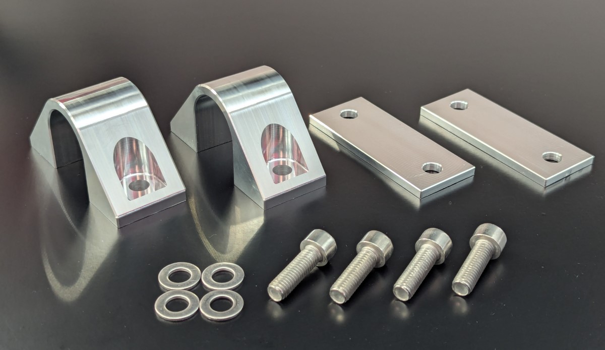 They weigh only about 67% of what the typical cut down aftermarket sway bar brackets do and save around 185 grams / 6.5 ounces of weight in total when including the spacers.
